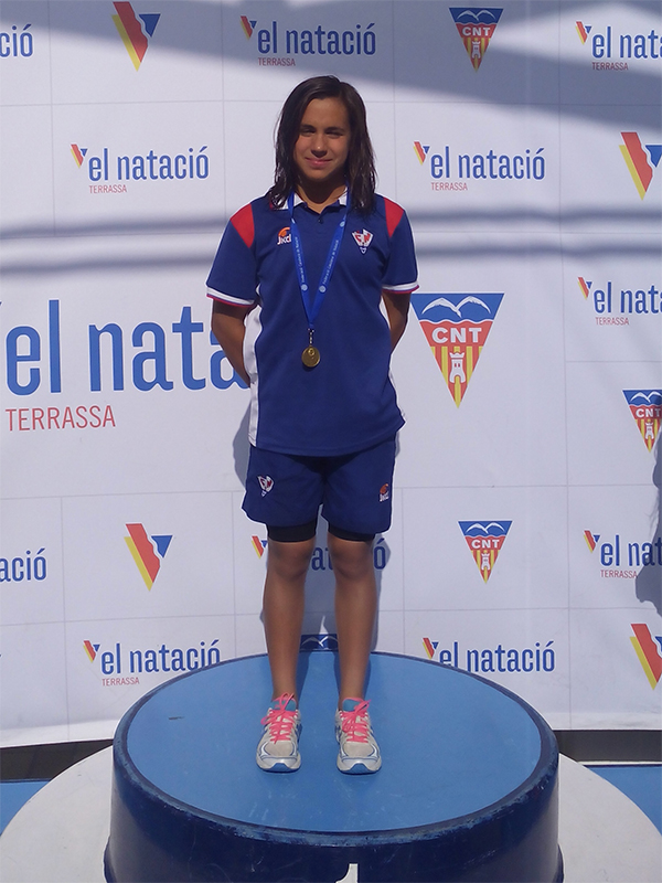 En un campionat de Catalunya Infantil on el nivell de tots els nostres joves nedadors va destacar per les grans marques aconseguides i per les bones classificacions (fins a un total trenta-vuit finals) hem de destacar el campionat de Catalunya assolit per la Marina Martínez en la prova dels 200 metres braça, on amb una marca de 2.43 va aconseguir pujar a dalt de tot del podi. La Marina, el dissabte, encara va tornar a endur-se una altre medalla, en aquest cas la de plata en els 100 metres braça, amb un crono de 1.17.16. Molt bé per la Marina.