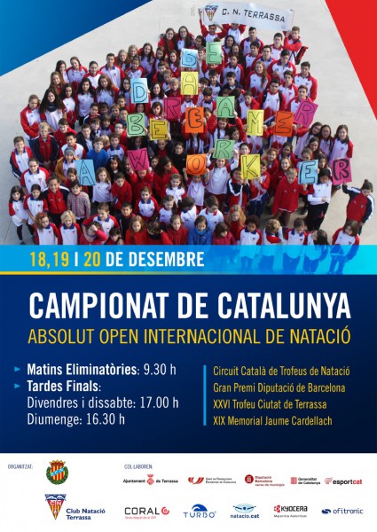 Des d’avui divendres i fins diumenge, es celebren els Campionats de Catalunya Open “Circuit Català de Terrassa” a les instal·lacions del CN Terrassa. El CN Mataró hi participa amb 30 nedadors absoluts, júniors i alguns d’infantils. En Sergi planteja aquest campionat amb finalitat preparatòria per a altres competicions del futur com la Copa d’Espanya Absoluta i Campionats d’Espanya Júnior i Infantil. El format de la competició serà pel matí eliminatòries i a la tarda les finals. Donat l’alt nivell dels nedadors participants, entrar a les finals serà molt difícil, amb tot, els nostres lluitaran per aconseguir medalles i per millorar posicions. Nedadors extrangers de reconegut prestigi i la participació de l’equip nacional faran que la competència sigui molt alta, fet que dóna molt atractiu a aquest campionat.