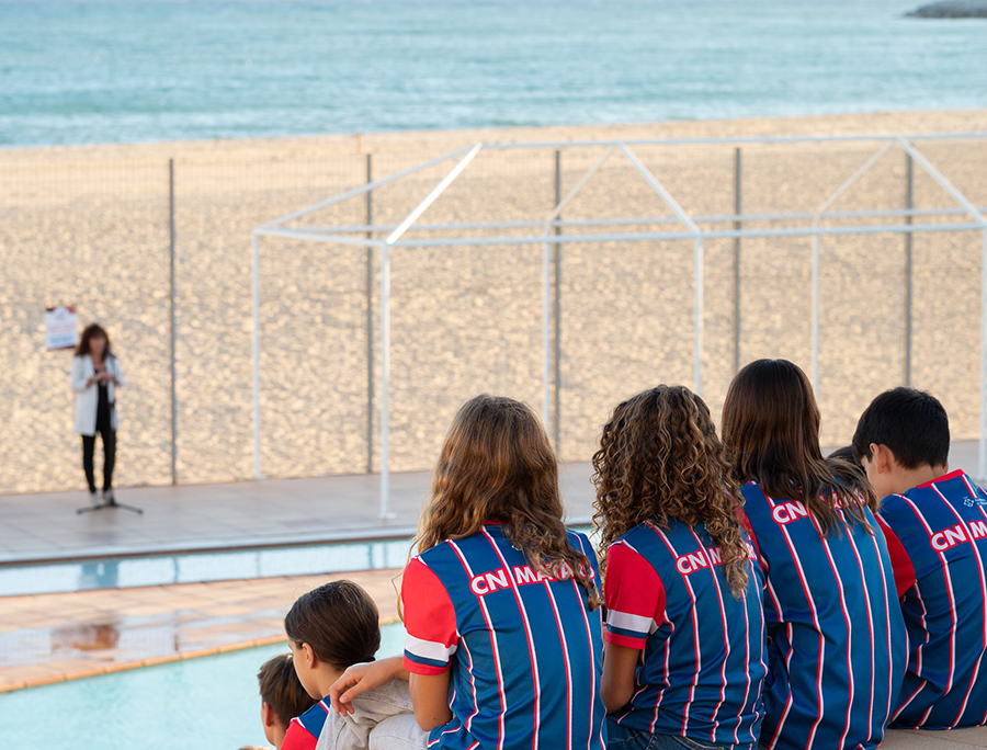 Encabat, tots els esportistes van desfilar a l’entorn de la piscina i van saludar, un per un, a les personalitats assistents, la sra. Bea Delgado, el sr. Francesc Casabella, els membres de la Junta Directiva, la sra. Eva Viciano, la sra. Núria Ripoll i la sra.Gàlia Dvorak, i els patrocinadors del primer equip de waterpolo femení, el sr. Xavier Castellví CEO d’Assolim i la sra. Sílvia Vidal, directora de la Farmàcia Sílvia Vidal i la patrocinadora de l’equip de Natació Artística, la sra. MJ Vicente.