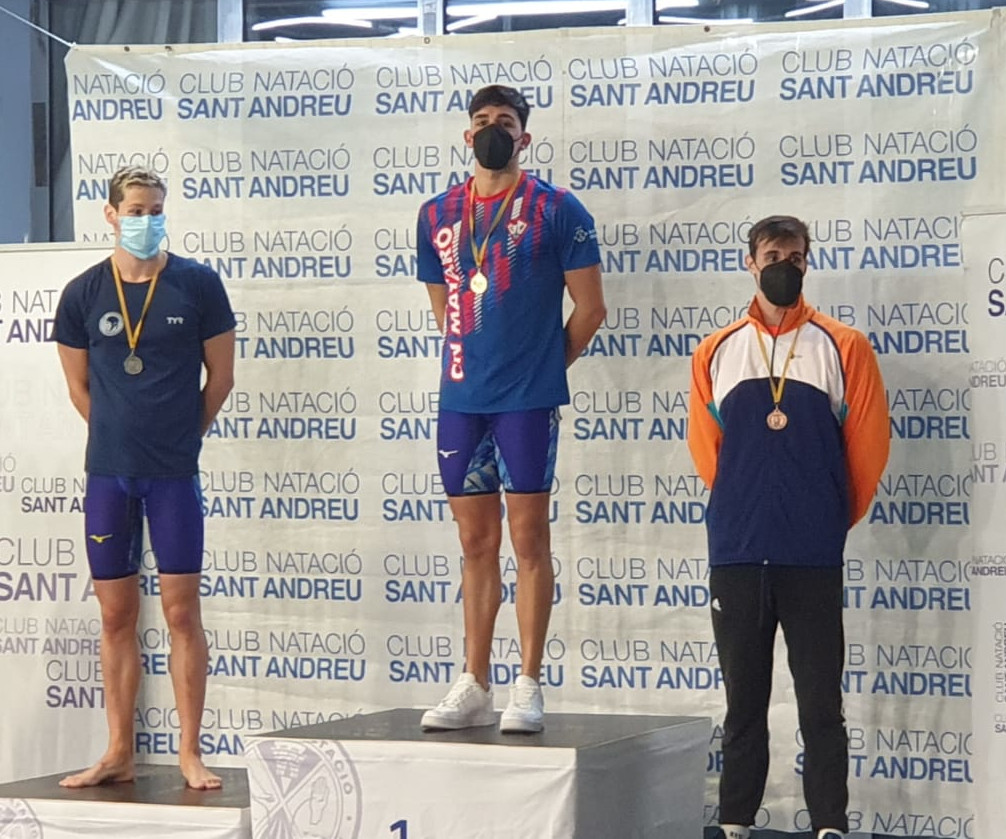 Molt bons resultats al Gran Prix Internacional que s’ha nedat aquest cap de setmana a la piscina Pere Serrat del CN.Sant Andreu, En la primera jornada de dissabte ja hem de destacar grans registres dels nostres nedadors com són les medalles d’en Guillem Pujol que va pujar al podi per a endur-se dues medalles, una de plata en els 800 metres lliures i la de bronze en els 200 lliures, demostrant que a part de les Aigües Obertes en Guillem té ferro a les piscines. La nostra Mariló Martí va ser l’altra nedadora del Centre que el dissabte va tocar metall, guanyant la medalla de plata en els 200 lliures i demostrant que també està en un moment dolç de forma física. Hi van haver més bons resultats dissabte, de la mà d’en Jan Giralt que va ser 6è. en 100 esquena. En Marc Pou també va entrar entre els deu primers amb una gran 8a. posició en 100 papallona. En noies van ser la Malen Tomàs qui va fregar la medalla amb la 4a. posició en els en 100 papallona i la Berta Cambray que amb una 7a. posició també en 100 papallona van deixar empremta que el nostre equip està molt en forma. Però no es van acabar aquí les bones sensacions, a la segona jornada de diumenge, els nostres nedadors van tornar guanyar fins a quatre medalles més i van ocupar diverses zones de dalt en els respectives proves nedades. En Jan Giralt, es va proclamar campió en la prova de 200 metres esquena, guanyant la medalla d’or després de fer una cursa pletòrica. En Guillem Pujol, en un estat de forma impressionant, va tornar a penjar-se dues medalles de plata, una en els 1500 metres lliures i l’altra en els 400 lliures. La Mariló Martí va tornar a nedar molt bé, i es va endur la seva segona medalla del campionat en la prova de 100 metres lliures on va ser la 2a. classificada. Més bons resultats van ser els de Mariló en la prova dels 400 metres lliures, 6a. classificada, la Malen Tomàs 5a. en 50 papallona, la Berta Cambray, 6a. també en 50 papallona, en Pol Martínez 6è. en 100 metres braça, l’Arnau Honrubia, 5è. en 200 papallona i en Marc Pou 7è. també en 200 papallona.