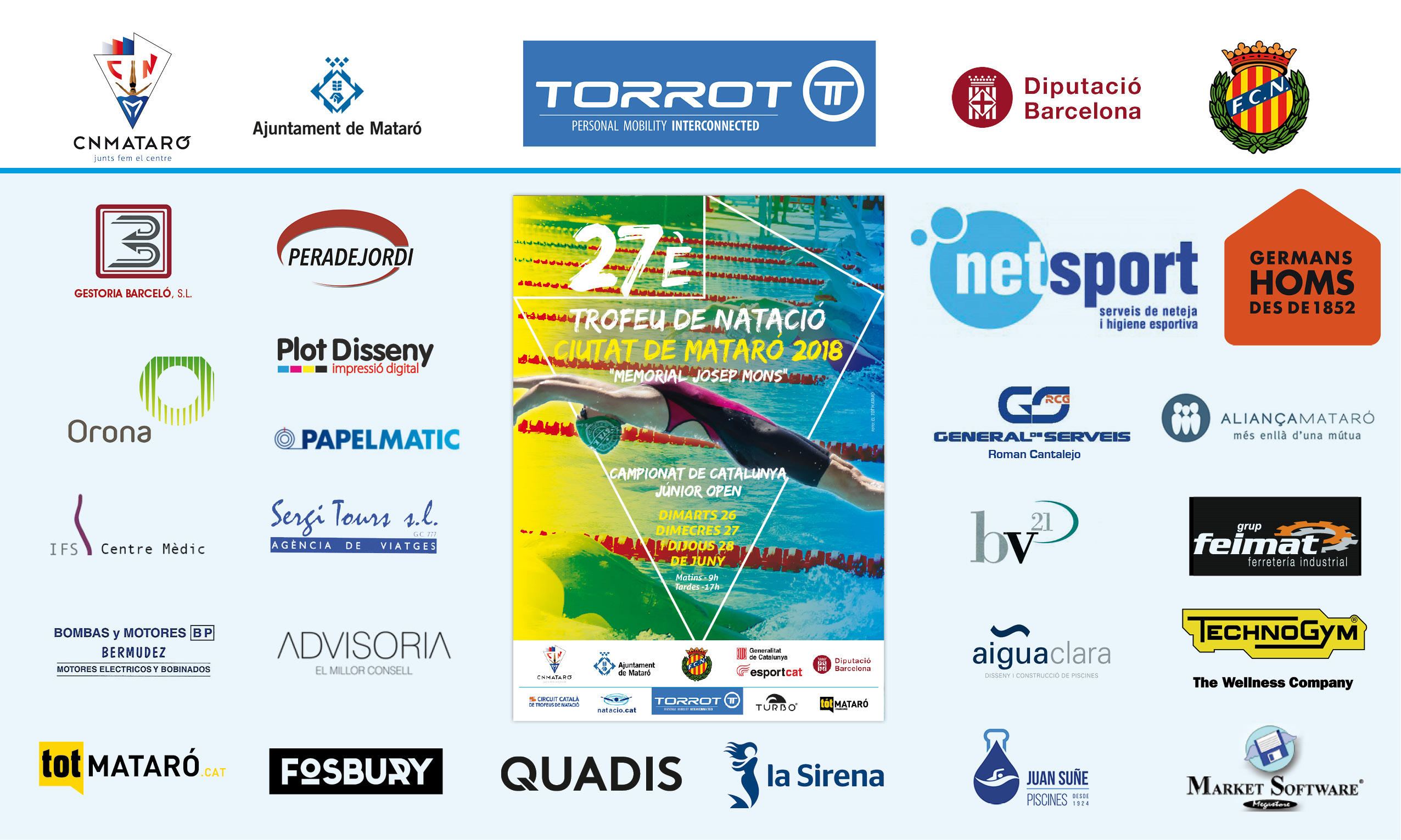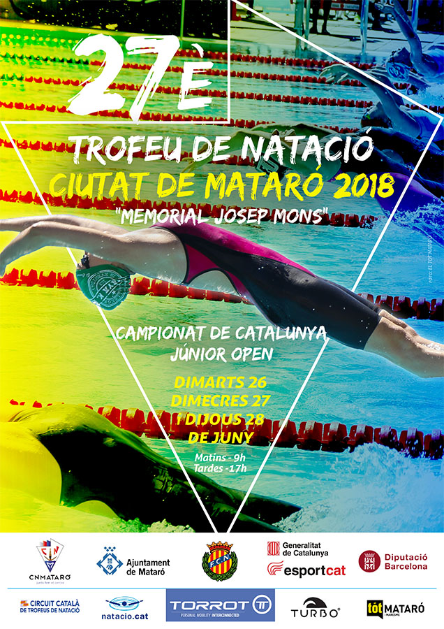 Els propers dies 26, 27 i 28 de juny el Centre organitza la 27a edició del Trofeu de Natació ciutat de Mataró “memorial Josep Mons”, i el Campionat de Catalunya Júnior Open. Seran tres dies on podrem veure nedadors consagrats de nivell internacional, i joves que ja són realitats o encara promeses de la nostra natació. El Centre, com cada edició, hi presentarà l’equip de gala amb objectius, tan individuals com d’equip, molt ambiciosos.