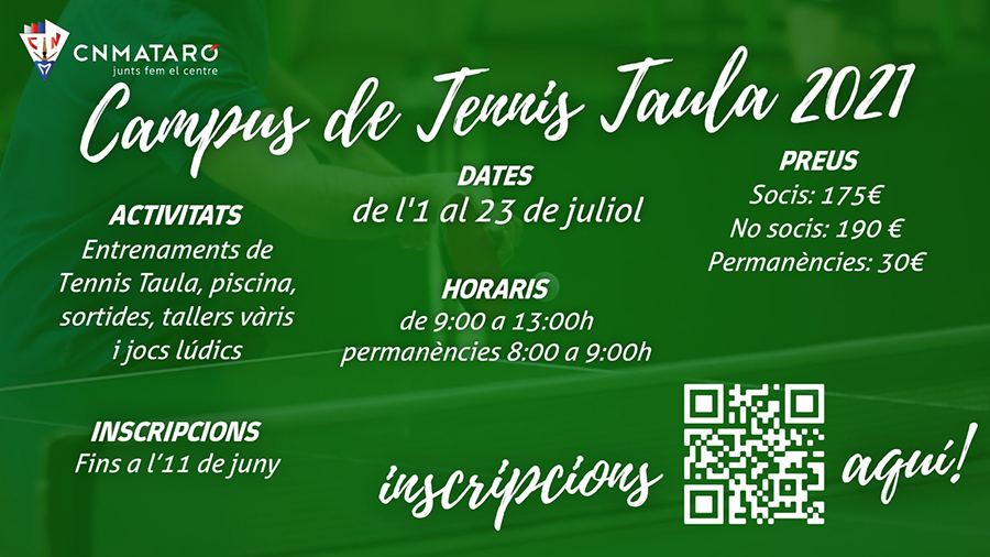 Ja hem obert les inscripcions per apuntar-te al Campus d’Estiu de Tennis Taula. Mira tot el que t’oferim. Passa l’estiu amb nosaltres i JUGA!