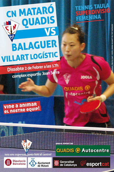 El partit ha estat intens com pocs. El Balaguer ho ha posat molt i molt difícil i s’ha arribat al darrer matx amb empat a tres victòries. Fins aleshores, la Gàlia, la Liu i els dobles havien donat els tres punt del Quadis, però les jugadores xineses de l’equip visitant han fet un recital de joc i s’han imposat també ens seus partits individuals. I ha estat la nostra xinesa la Liu que en el darrer i definitiu partit ens ha donat el punt que ens ha fet guanyar el matx i continuar a la tercera de posició.