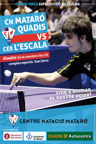 Primer partit i primera victòria del Quadis masculí de tennis taula que es va imposar a l’equip empordanès del CER l’Escala per un resultat clar (4-1). Els nostres jugadors, perduda la innocència de l’any passat, varen jugar un matx completíssim. El nou fitxatge, en Dani Torres, dóna molta consistència a un equip on en Peral i en Moregó acaben de donar el bon nivell que de ben segur ens donarà moltes alegries. De moment ja tenim la primera.