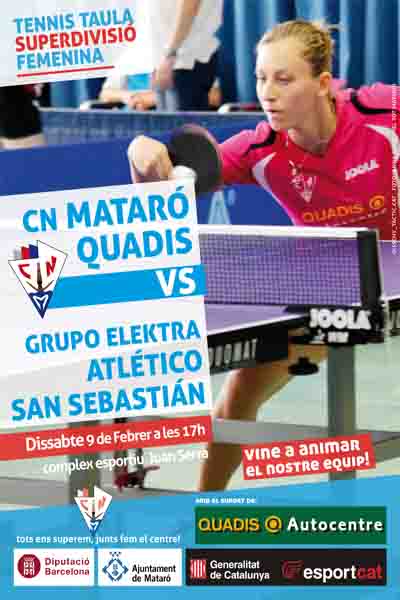 El Quadis femení de tennis taula juga dissabte a les 5 al pavelló contra el Grupo Elektra Atético San Sebastián, en un partit per a continuar amb les victòries que acompanyen a les nostres jugadores en el darrers partit. Les de la Flora es troben en un moment molt dolç de joc i resultats i ho volen aprofitar amb una altra victòria aquest dissabte.