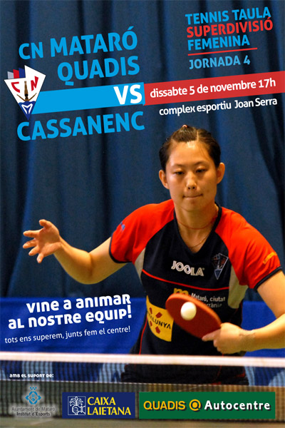 Tres de tres, el Quadis de tennis taula femení ja és el segon classificat de la Superdivisió Femenina després d’imposar-se al Cassanenc-La Selva a casa per (4-2). Les de la Flora s’estan mostrant com un equip intractable, després de que la setmana passada aconseguissin la classificació per als vuitens de final de la Copa ETTU, sense perdre ni un sol partit. El matx d’avui ha tingut uns momentr d’incertesa al començament (1-1) després dels dos primers partits, però la Gàlia i després el doble; Gàlia/Chang han posat distància (3-1). La millor jugadora del Cassanenc-La Selva, la Yuoin Yang apretava el marcador a la mínima després d’imposar-se a la Liu Chang (1-3), però la Gàlia al darrer partit ho ha sentenciat a favor del Quadis guanyant per un clar i defintiu (3-0).