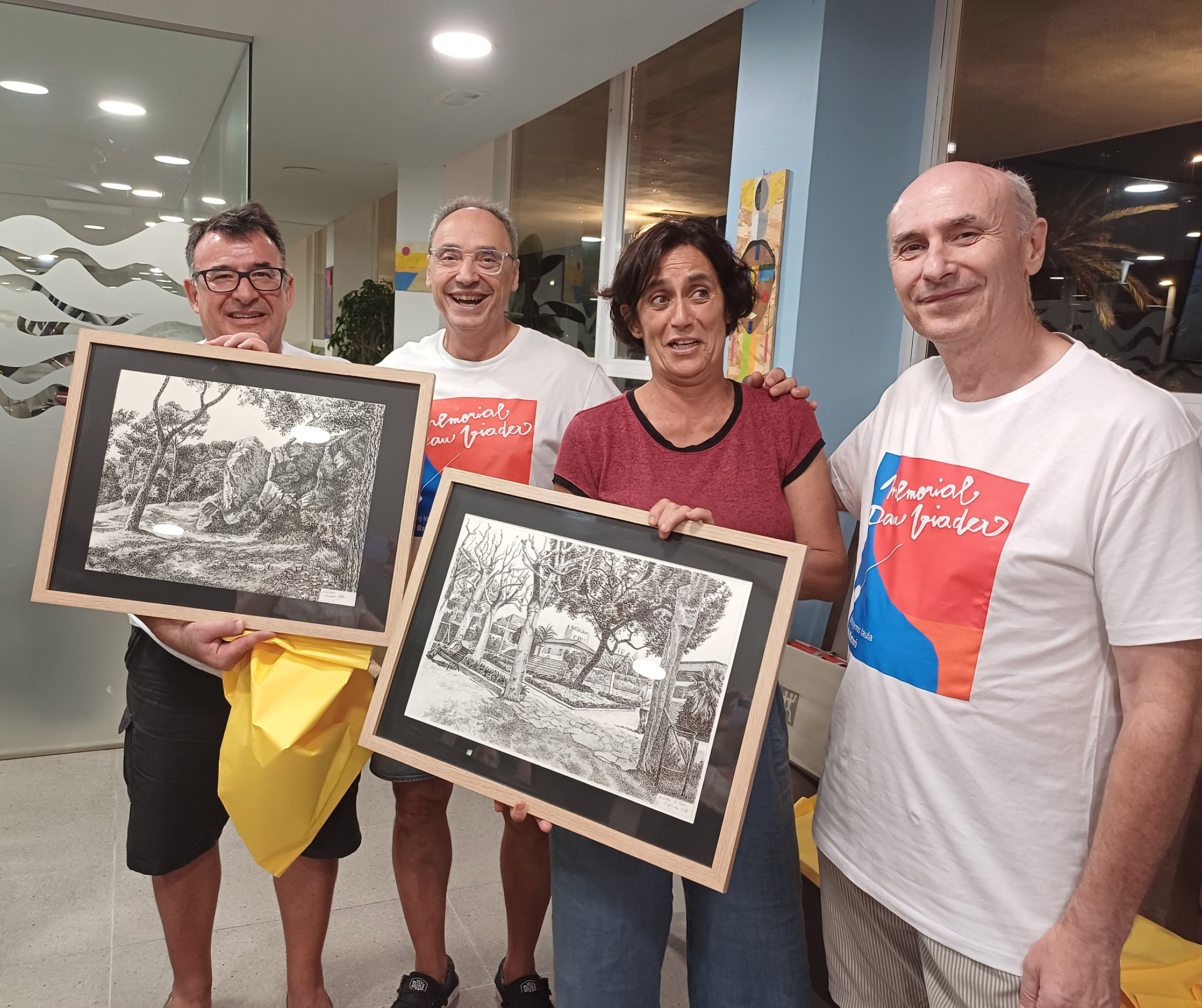 La Marta Floriach i en Jordi Martínez, principals artífexs de l’organització de la jornada, van rebre. de mans d’en Ramon Viader, dos quadres dibuixats pel pare, en Pau, que tenia en el dibuix, un hobby que praticava amb gran art.
