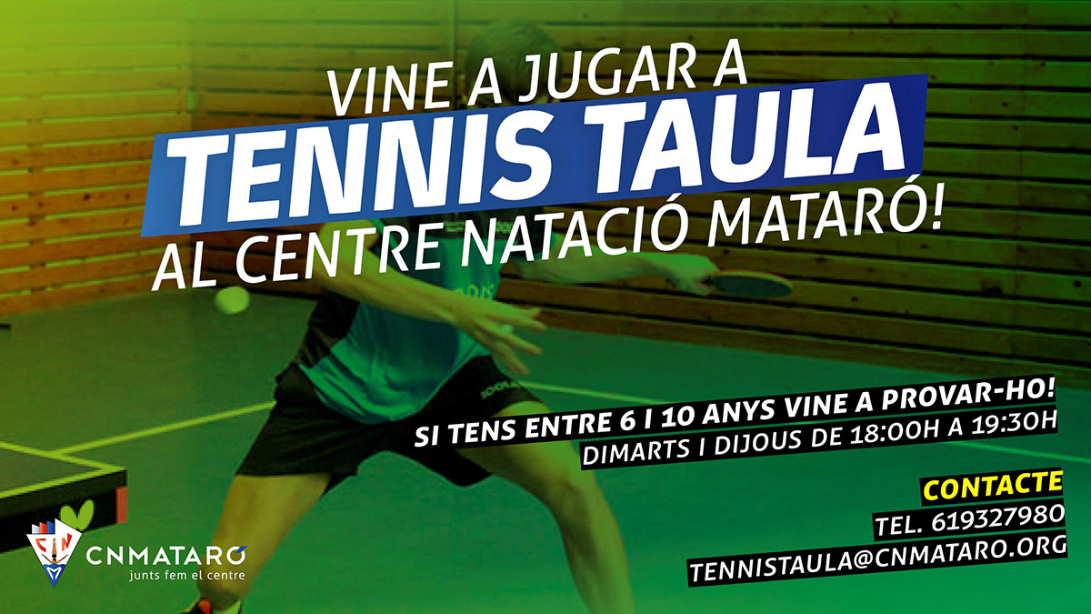 Si encara no has provat el Tennis Taula, vine al Centre, agafa una pala i comença. Un joc viu, ràpid, de molts reflexos, intens com pocs. Decideix-te, prova’l. T’atraparà.