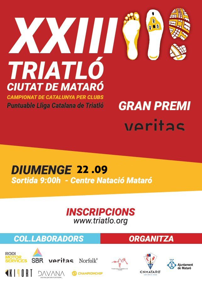 El diumenge 22 organitzem al Centre la XIX edició del Triatló ciutat de Mataró, campionat de Catalunya de Clubs. Amb una previsió d’uns 800 triatletes la prova, espectacular com poques, afegirà la competitivitat de la classificació pel campionat de Catalunya. El tram de mar, per a nedar-hi 750 m. la N-II on hi faran 20km de bicicleta i el passeig marítim per a córrer-hi els darrers 5 km, s’ompliran de corredors que s’hi deixaran la pell. Vine a veure l’espectacle del Triatló.