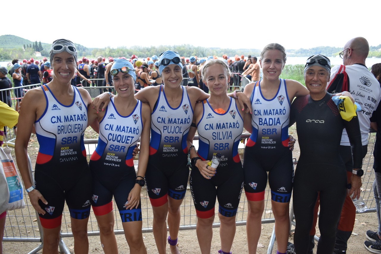 En els grups d’edat femenins, les nostres triatletes van destacar amb tres podis. En la categoria 25-29 femenina, Ona Badia va finalitzar 10a i Marta Cuquet 12a. A la categoria 35-39 femenina, Alba Pujol es va proclamar campiona d’Espanya, aconseguint la primera posició. En la categoria 45-49 femenina, Núria Bruguera va guanyar la medalla de bronze, demostrant la seva passió i esforç. Sílvia Bach també va fer una gran competició, acabant en la 5a posició. Per últim, en la categoria 60-64 femenina, la veterana Maria Jordà va assolir la medalla de bronze, demostrant que amb treball i dedicació es poden aconseguir grans fites.