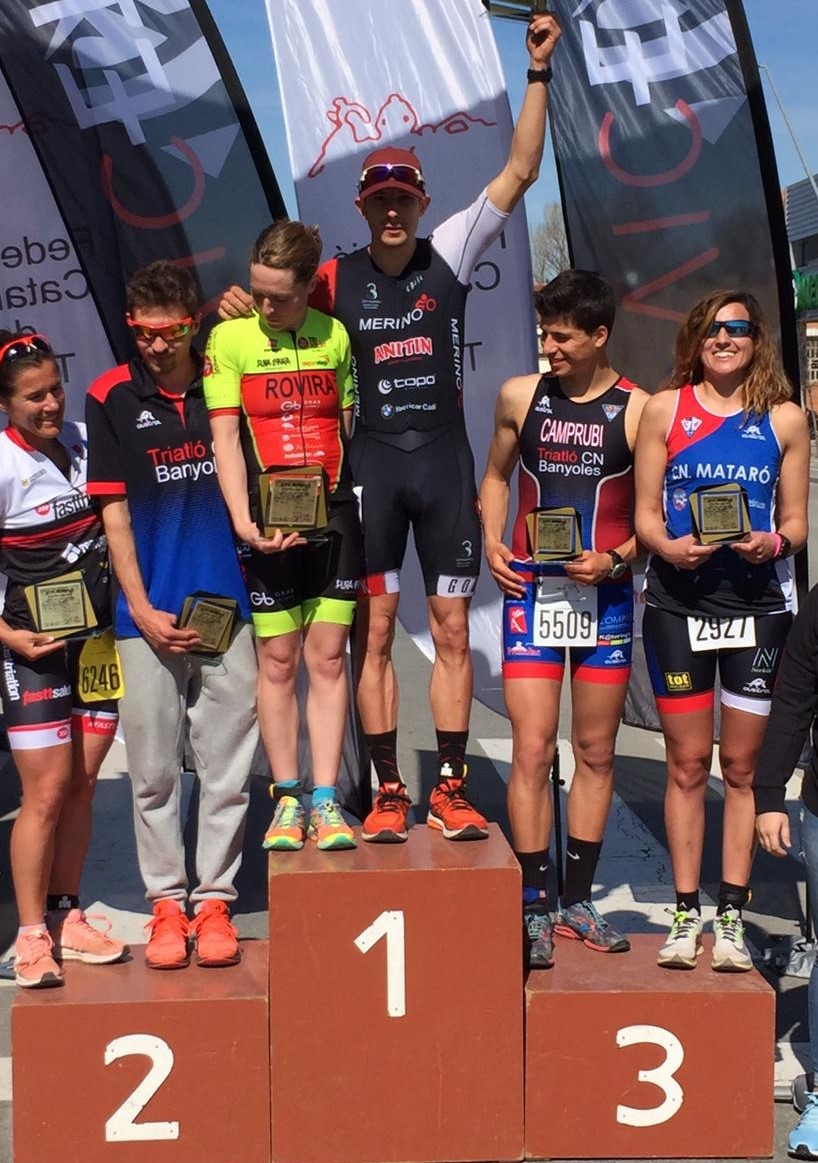 Es va disputar aquest diumenge la 12a edició de la Duatló ciutat de Vic, prova puntuable per a la Copa Catalana de Duatló, i com cada any, amb un nivell d’exigència en els circuits que posa a prova a totes les/els atletes participants gairebé fins al límit. A l’exigència de la prova se li ha d’afegir l’espectacularitat que suposa córrer pels voltants i per l’interior de la vella i bonica capital osonenca. El circuits van variar en la seva distància dels darrers anys; 6 km de cursa a peu inicial, 30 km de ciclisme amb dos ports i 3 km finals de cursa a peu per finalitzar la prova. Ressaltar l’única representant femenina del Centre la Ivana Peralta que va destacar en la seva actuació entrant en una gran 3a posició absoluta demostrant la seva especialització en el sector de ciclisme on va córrer molt bé tot el tram i on va fonamentar bona part del seu èxit. En nois, novament l’Albert Ruz va córrer des de l’inici entre els capdavanters i va estar sempre en el grup de dalt, finalment per ben poc de se li va esmunyir la medalla en categoria absoluta que sí que va aconseguir en la categoria sub-23, la de bronze. L’Ivan Roca i l’Oriol Bruguera van entrar en la 21a i 24a posició respectivament. Amb aquestes bones classificacions masculines l’equip es va proclamar campió de la Duatló en la Classificació per Equips.