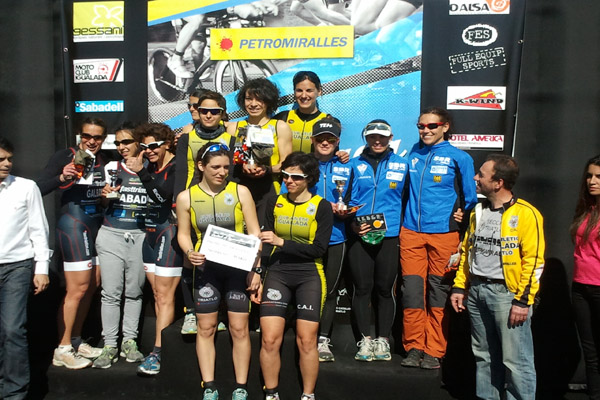 Es va córrer a Igualada el Campionat de Catalunya absolut de Duatló i el d’enguany ha estat el millor de tots els que s’han celebrat fins ara. Hi varen prendre part fins a 450 atletes i hi corria el campió del món de l’especialitat, en Roger Roca, que donava encara més nom a la cursa. La carrera consistia en 6 km corrent per un circuit de cros, 18 km de bicicleta i acabar amb un altre sector de cursa a peu de 3 km. El ritme de competició, des de l’inici, va ser brutal, per a poder fer la selecció natural dels millors atletes, una munió de corredors s’anaven despenjant del grup, incapaços de resistir el ritme dels del davant de la cursa. Aquí en Cano, el nostre entrenador-corredor va tornar a demostrar la seva categoria i va entrar en el tall de selecció, acabant en una gran 18a poició general, que li donaria el títol en la categoria Veterans-1. L’altre triatleta especialista, en Quim Soler, quan estava en plena remuntada de posicions en el tram de bicicleta, va punxar una roda fet que el va obligar a retirar-se. Una llàstima. L’equip masculí va acabar en 4t lloc de la classificació que els manté entre els millors de Catalunya. En noies també hem d’anunciar bons resultats. La Natalia Rodriguez va fer una gran cursa i va sortir a donar-ho tot des de la sortida, va estar corrent molta part del circuit en segona posició, però en la segona transició la varen adelantar dues corredores que la varen apartar de la medalla. Estem segurs que en futures ocasions reeixirà. La Sheila Brillas va aconseguie en la seva partcipació dues grans fites; 6a classificada en categoria absoluta i campiona en la categoria junior. L’equip femení va pujar al podi per endur-se la medalla de plata. Un gran èxit.