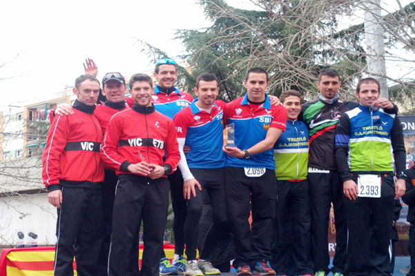 La Duatló de Rubí és una prova que en tan sols dos anys està agafant molta anomenada. El diumenge els nostres triatletes hi eren presents en un matí molt fred i on els prop de 400 atletes havien d’afrontar unes distàncies de 10km de cursa a peu, 40 en bicicleta i 5 més de cursa a peu. Enguany aquesta prova obria el Circuit puntuable per a la Lliga Catalana de Duatlons. Els resultats han estat òptims pel nostre equip, doncs la secció ha aconseguit guanyar en categoria individual absolut amb el nou corredor en Lluís Vila i per equips amb l’equip masculí. Afegir que en Pablo López va entrar en una meritòria 6a posició absoluta, guanyant alhora la categoria sub-23. En Marc Rovira que va entrar en la 21a posició va fer el tercer temps dels nostres triatletes que van acabar assolint d’una manera prou clara la victòria final per equips. L’única representant femenina de l’equip la Judit Zaragoza va aconseguir un meritòria 12a posició en la general.