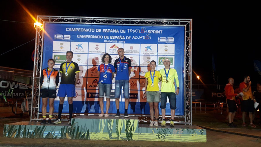 Aquest cap de setmana el nostre equip de Triatló ha estat en dues competicions molt importants. A Banyoles es va celebrar el campionat d’Espanya de Triatló Sprint, en categoria cadet i campionat d’Espanya d’Aquatló el dissabte i el diumenge. En la primera jornada de dissabte en categoria Cadet l’Adrià de Moya va prendre la sortida en una multitudinària prova amb més de 300 atletes. Les distàncies eren de 750 metres nedant, 10 km en bicicleta i 2,5 km de cursa a peu. Bona cursa de l’Adrià. En noies la Júlia Raja va fer una gran cursa i va aconseguir entrar en una molt meritòria 43a posició després de lluitar molt contra adversaris de molt de nivell. A la tarda era la cursa pels Grups d’Edats. Fins a set corredors del Centre hi prenien part. Destacar en categoria masculina una altra demostració d’en José Luis Cano que va ser el guanyador en el grup de 50-54 anys. L’Oriol Gil va ser medalla de plata en el grup de 35-39 anys. En noies la Joana Martínez i la Núria Bruguera van ser ben a punt de pujar al podi , però ambdues van ser 4es classificades, la Joana en el grup de 45-49 anys, i la Núria en els de 40-44. En la categoria Elit Femenina, fins 5 corredores del Centre disposades a donar-ho tot. Però la tarda es va complicar quan una tempesta d’estiu va dificultar la cursa. Amb tot, les nostres van demostrar el seu enorme nivell. La més destacada va ser la Clàudia Luna que va fer una molt bona cursa i va entrar en la 17a posició, l’Aida Fàbregas ho va fer en la 34a i ja més enrera la Mayalen Noriega i la Jessica Brillas que també van fer una molt bona cursa. El diumenge era la 2a i darrera jornada. En joc el campionat d’Espanya d’Aquatló de Grups d’Edats i Elit. Tres corredors prenien part en la prova de GGEE, en Jordi Fernàndez va fer una gran cursa i va acabar entrant en la 6a posició en el grup de 30-34 anys. En “Super-Cano” va ser el subcampió en el grup de 50-54 anys, en Quim Nicolau va ser el 31è en el grup de 20-24 anys. En noies, tres corredores del Centre van disputar la categoria Elit, la Clàudia Luna, encara una mica cansada de la competició de dissabte va entrar en la 19a posició. La Júlia Raja, tot i ser Cadet, es va veure amb cor de competir en la prova amb les millors i va fer una cursa impressionant entrant en la 31a posició. La Jessica va entrar en la 51a posició.