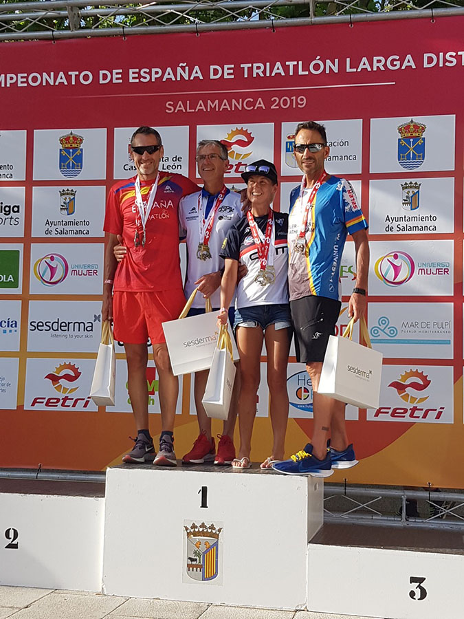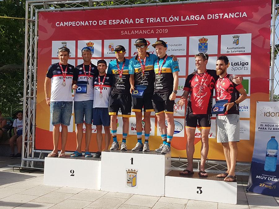Es va disputar aquest passat cap de setmana el campionat d’Espanya de Triatló de Llarga Distància a Salamanca en unes condicions climàtiques extremes de calor. Quatre triatletes del Centre hi van ser presents en la categoria Elit masculina, dos en el Grup d’Edats. Hi havien bones vibracions abans de començar però el cert és que es van superar amb escreix quan l‘equip masculí es va proclamar Subcampió d’Espanya fet que col·loca el Centre Natació Mataró novament a l‘elit d’aquesta disciplina. S’encetava el Triatló nedant els 3000 metres pel riu Tormes, després els 120 km de ciclisme en un circuit de gran desnivell i que juntament amb l’alta temperatura va passar una dura factura als corredors. Va ser en el tram final del sector de cursa a peu de 30 km on els i les atletes van haver d’acarar la duresa extrema de la prova arribant fins al límit del seu cos. En Quim Iturralde va ser el nostre 1r triatleta entrant en una gran 16a posició. L’Oriol Gili també va demostrar una gran preparació i solidesa i va entrar en la 24a posició. En Luis Diogo, va patir alguns problemes a la fase final però va resistir els atacs finals i va entrar en la 32a posició. En José Luis Cano es va haver de retirar degut a problemes físics. En Grups d’Edat, teníem a una corredora i un corredor. La Joana Martínez va pujar al podi per endur-se la medalla d’or i proclamar-se campiona d’Espanya de la seva categoria de 50-54 anys deixant la marca d’una gran cursa i una gran preparació. L‘Àleix Garreta va protagonitzar la gran alegria d’arribar en la 9a posició en la categoria de 25-29 anys, demostrant molt bones maneres i futur.