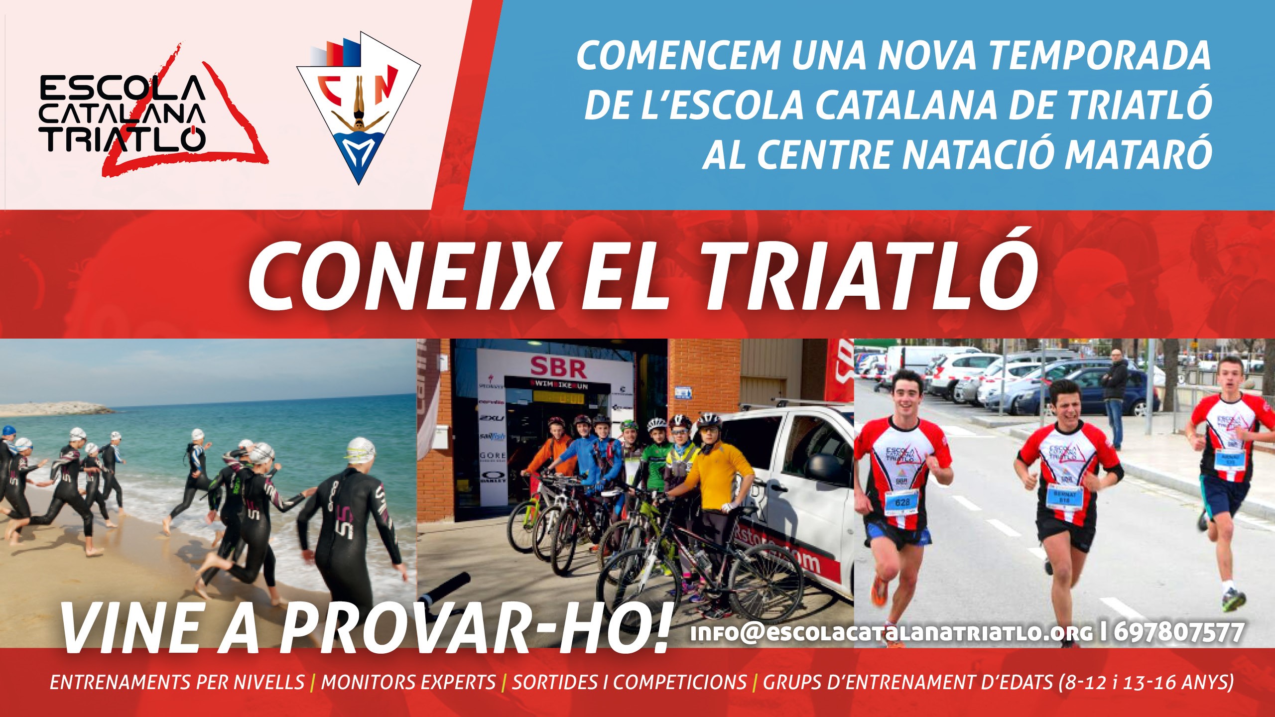 L’Escola Catalana de Triatló (ECT) obre les seves inscripcions per a una nova temporada. Entra al Món-Triatló i descobreix un esport apassionant com pocs. Formaràs part d’un equip que competeix i comparteix el vincle per assolir èxits esportius. Grups d’entrenaments en funció de l’edat (8-12 anys // 13-16 anys). Envia un mail o truca per ampliar la informació amb el seu responsable, en Pol Samsó. T’esperem!