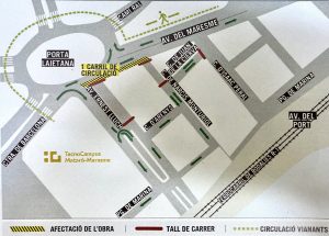 Els vehicles procedents del front marítim hauran de desviar-se per Passeig de la Marina per tal de continuar la seva ruta.