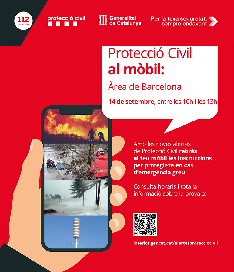 Per valorar la prova s’ha previst una enquesta per informar si s’ha rebut correctament el missatge als telèfons mòbils. La participació en aquesta enquesta és clau per comprovar el funcionament correcte del sistema. Per tal que la campanya informativa tingui un ampli ressò, us agrairem que en feu difusió a través dels vostres canals de comunicació per tal que la informació pugui arribar al vostre personal i usuaris.