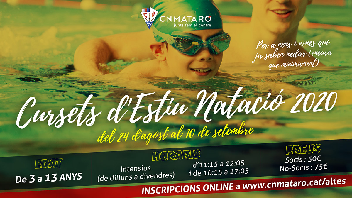 Tres setmanes intenses per gaudir tot aprenent i millorant la natació: per a nens i nenes de 3 a 13 anys (que sàpiguen nedar encara que sigui mínimament) i amb dos horaris diferents per escollir.