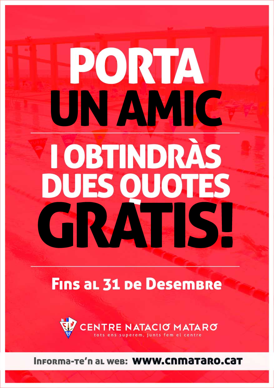 Durant aquest mes de desembre si ens portes un amic que es faci soci tu deixaràs de pagar dues de les teves quotes