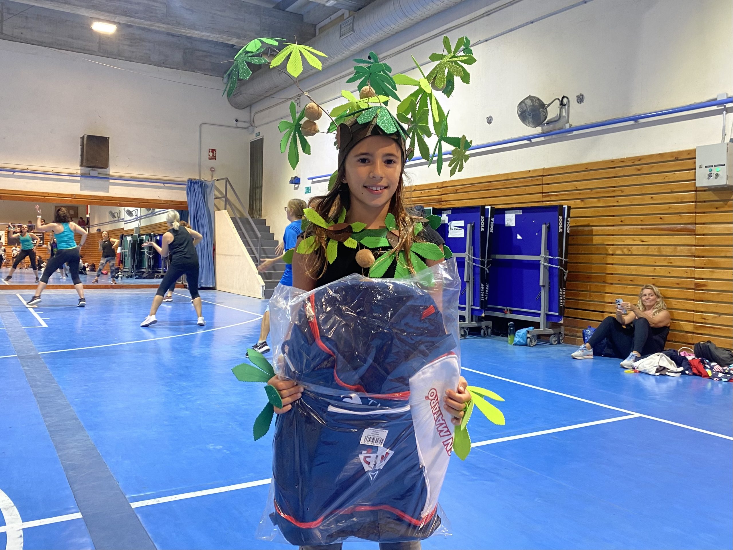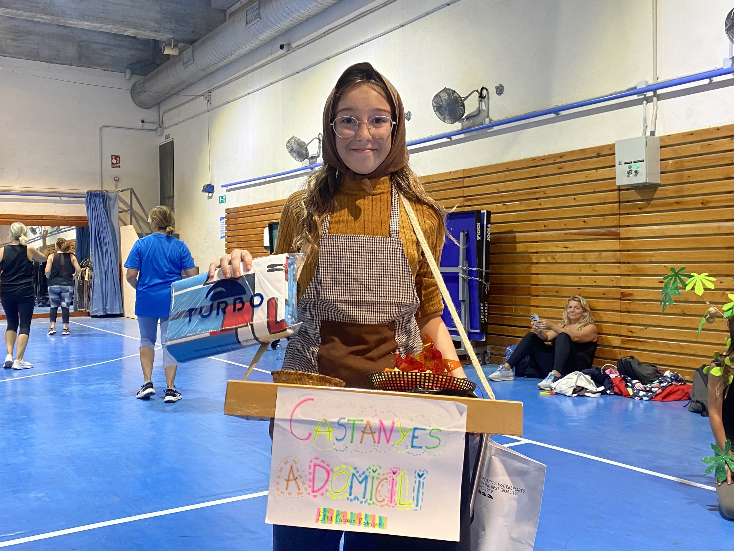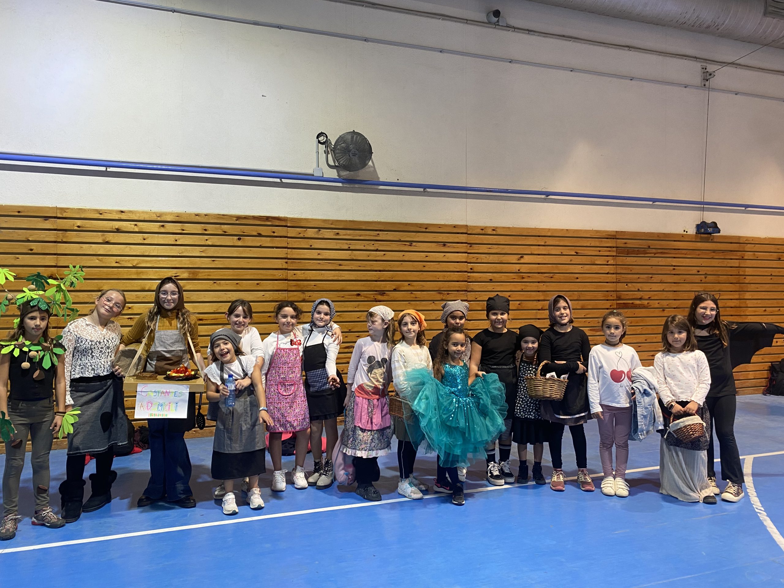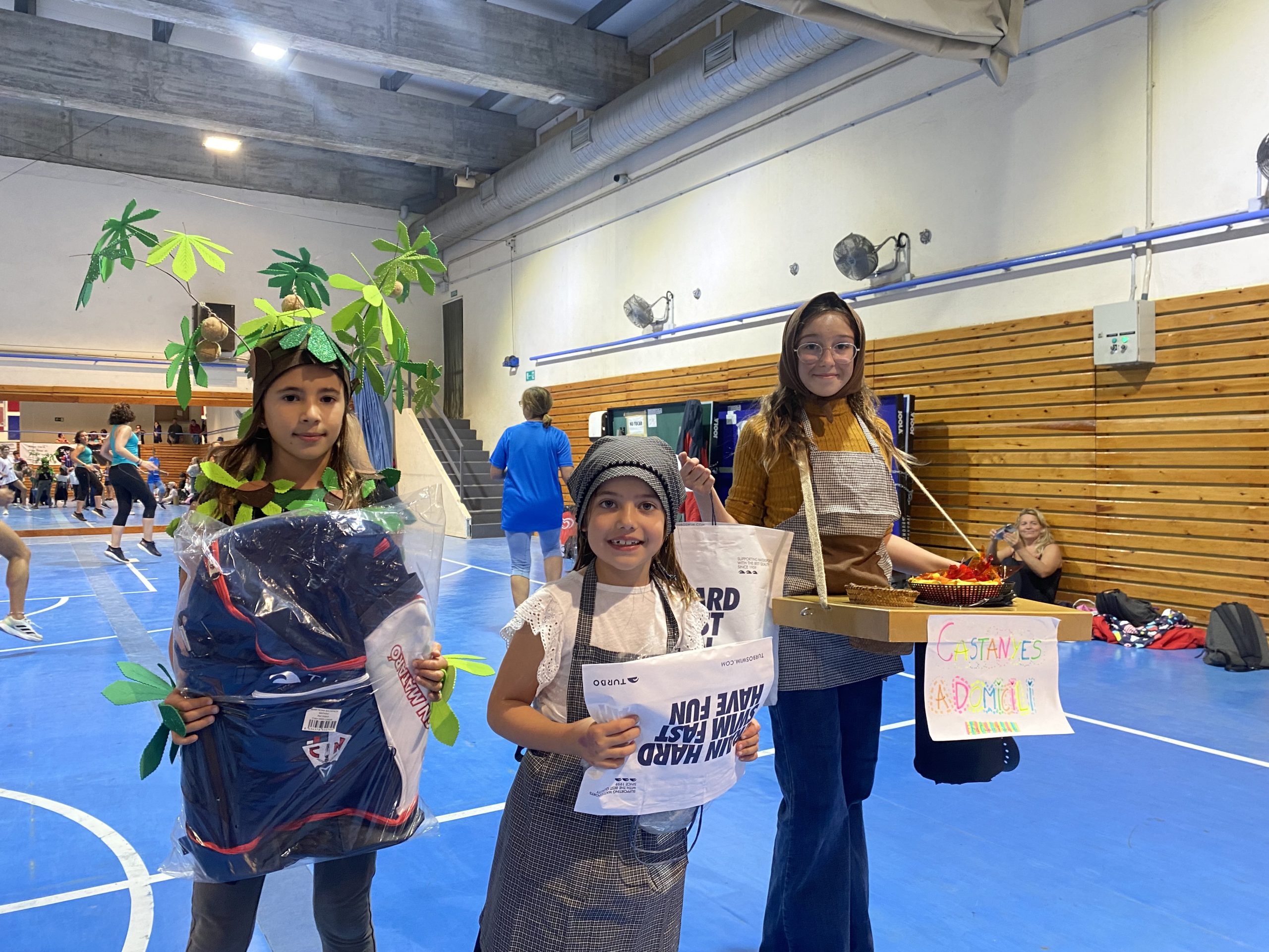 Després de la zumba, es van repartir premis a les tres millors disfresses de castanyers i castanyeres. La guanyadora va ser Xènia Cebrià Martínez, vestida d’arbre castanyer; en segon lloc, Etna Caballero Rodríguez, amb una disfressa de castanyera que simulava una parada amb taula i tamboret; i en tercera posició, Júlia Delgado Martínez, amb una disfressa molt bonica de castanyera. Finalment, ens vam reunir a la zona exterior de la cafeteria, on es van repartir castanyes i moniatos per a tothom.