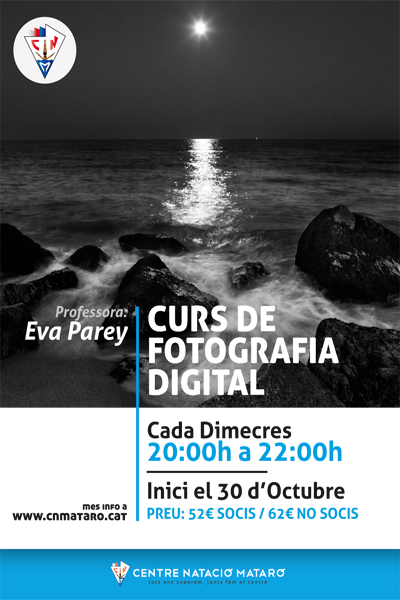 Us presentem un nou curs de Fotografia Digital que es farà cada dimecres de les 8 del vespre a les 10 de la nit a la Sala de Juntes del Centre. Tindrà una durada de 8 sessions amb un total de 16 hores de classe i el seu preu és de 52€. La professora que s’encarregarà de fer aquest interessant curs és l’Eva Parey. En el programa de presentació veureu que és un curs molt complet i que tracta molts temes i variables de l’apassionant món de la fotografia digital i les seves múltiples possibilitats.