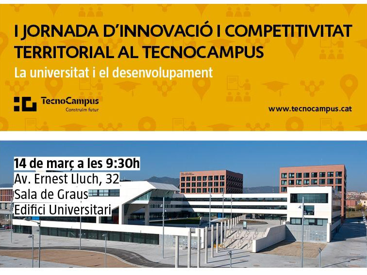 El dia 14 de març a partir de les 9:30 el Tecnocampus organitza la 1a Jornada d’Innovació i Competitivitat Territorial.