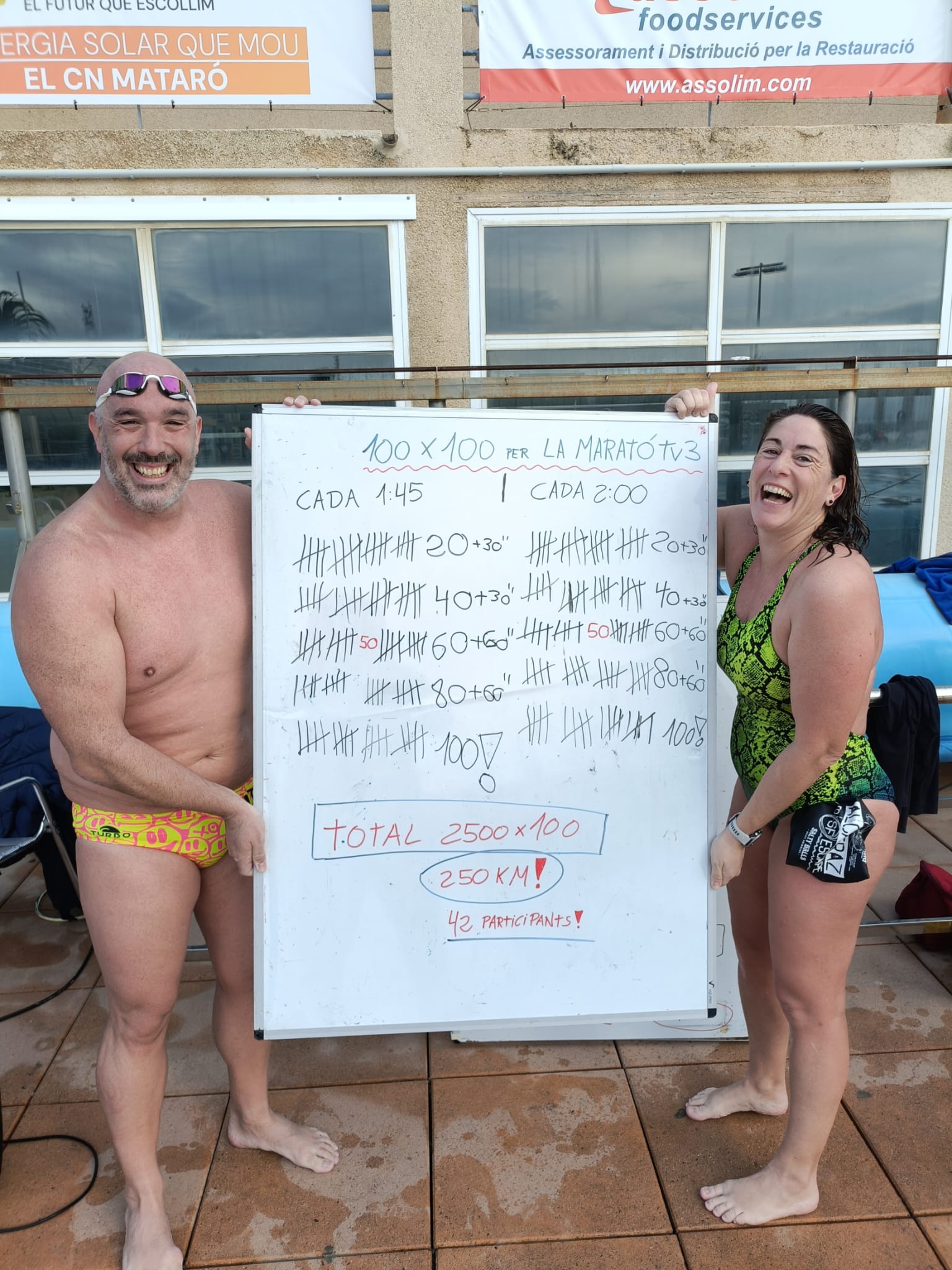 Un total de 42 participants van omplir la piscina amb un ambient magnífic, superant plegats els 2.500×100 metres nedats. Un esforç col·lectiu extraordinari que reflecteix l’esperit solidari del Centre i de tots els que en formeu part.