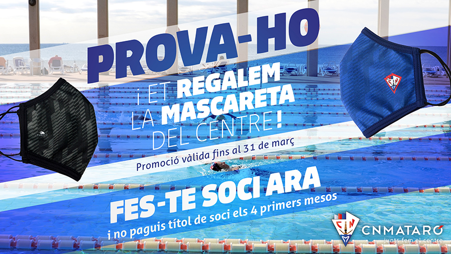 Vine i fes-te soci fins al 31 de març. No pagaràs el títol de soci durant els quatre primers mesos i a més et Regalem la mascareta del Centre.