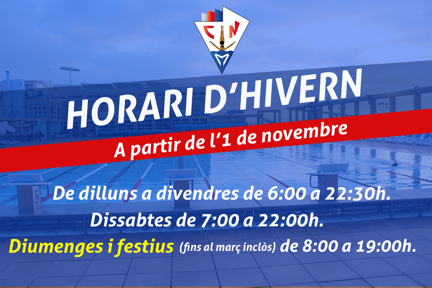 Com cada any, l’1 de Novembre canviem l’horari de tancament de les instal·lacions que afecta els diumenges i els dies festius.