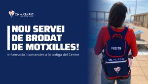 Des del Centre Natació Mataró us informem que, a partir d’ara, oferim un nou servei per personalitzar les motxilles del club amb el vostre nom brodat!