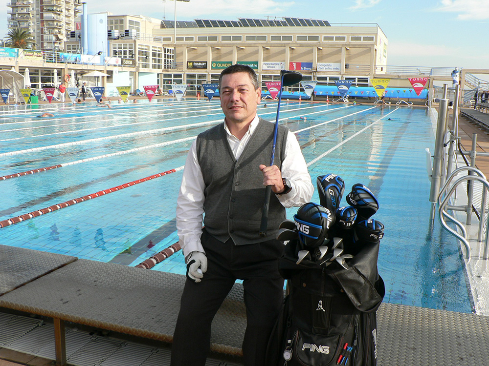 En Quique és un soci del Centre de fa molt anys. Hi va venir per fer esport, molt d’esport. És un esportista nat. Arrel d’un accident de moto, li van haver d’amputar una cama, però el seu tarannà lluitador el va fer sobreposar-se i centrar-se en la seva carrera esportiva. Va entrar a formar a part del nostre equip de natació a finals del 90, començaments del 91, que aleshores encara no tenia una secció d’esportistes adaptats. I allí ho va donar tot. Va entrenar molt i molt fort, es classificava per als campionats d’Espanya, aconseguia medalles. Ens recorda sorneguer, com en una edició del “Mulla’t per l’Esclerosi” l’aportació d’en Quique va ser nedar 10000 metres seguits en 2 hores i 54 minuts. En ressalta la gran “família” trobada al Centre i com va arribar a gaudir de les amistats fetes al club. A la que pot, com a bon soci que és, ve al Centre i es “marca” uns quants metres a l’olímpica. Quan ja li va semblar que en tenia prou, va deixar la natació però la seva ànsia competitiva el va fer entrar a provar, primer el pitch & put al camp que hi a a San Cebrià de Vallalta, i quan ja va tenir el nivell mínim va entrar a jugar el golf. Tal i com va fer amb la natació en Quique s’hi va abocar i va començar a entrenar un fum d’hores, de les 7 a les 10 del matí, si pot cada dia. La seva autoconfiança el fa ser molt ambiciós i la seva evolució va ser espectacular. L’any 2012 guanya per primera vegada l’open de Madrid per a jugadors adaptats. El 2015, en una altra gran demostració, torna a repetir el guardó. Comença a fer-se un lloc entre els millors. I mentre t’ho explica se li acumulen els objectius pels que té clar que lluitarà, campionats, opens i veus com els ulls se li fan grossos. Sent l’esport a flor de pell, pura vida. Acabem la xerrada. S’hi posa bé per a un quantes fotos, marcant estil mentre punteja un “swing” i em diu que té un “hàndicap” boníssim que l’any que ve el veurem. I se’n va rient.