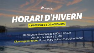 A partir de l’1 de novembre, el Centre torna a l’horari d’hivern. Això implica un canvi en l’horari de tancament de les instal·lacions, que afectarà principalment els diumenges i els dies festius.