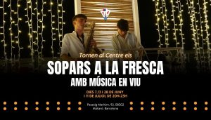 Ens complau anunciar que el proper dia 7 de juny tornen els sopars a la fresca amb música en viu al Centre Natació Mataró! De 20h a 23h, tots els socis i sòcies del club podreu gaudir d’un ambient agradable, amb bona companyia, un gran sopar i música d’ambient.