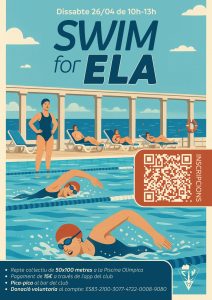El dissabte 26 d’abril a les 10:00h, el Centre Natació Mataró organitzarà una trobada especial amb motiu del SwimForELA, una jornada solidària per donar visibilitat i suport a la lluita contra l’ELA (Esclerosi Lateral Amiotròfica).
