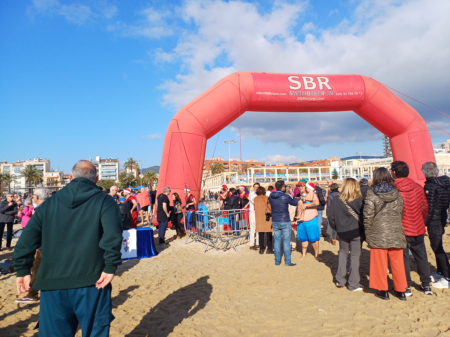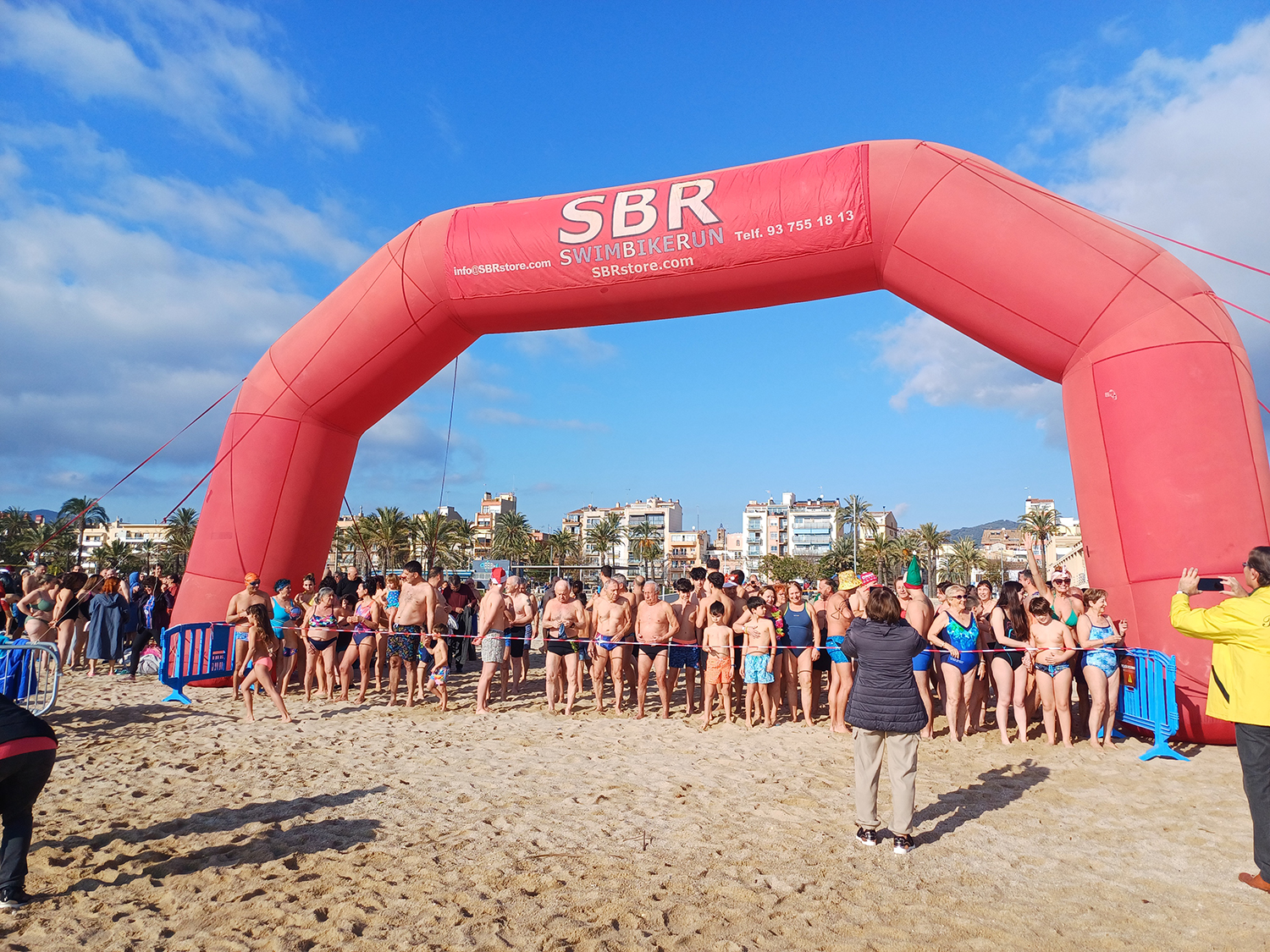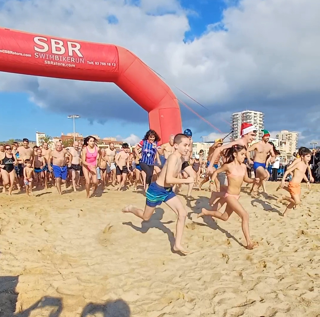 Més de tres-cents atrevits i atrevides es van veure amb cor de llençar-se a les gèlides aigües de mar (el termòmetre va marcar 13ªC!) i entre crits, xiscles, gent que no ho veia clar, d’altres que s’hi llençaven de cap, tothom s’hi va anar ficant. Alguns només s’hi sucaven i sortien esperitats, d’altres s’hi posaven bé i es marcaven unes apnees desafiant la fredor de l’aigua.
