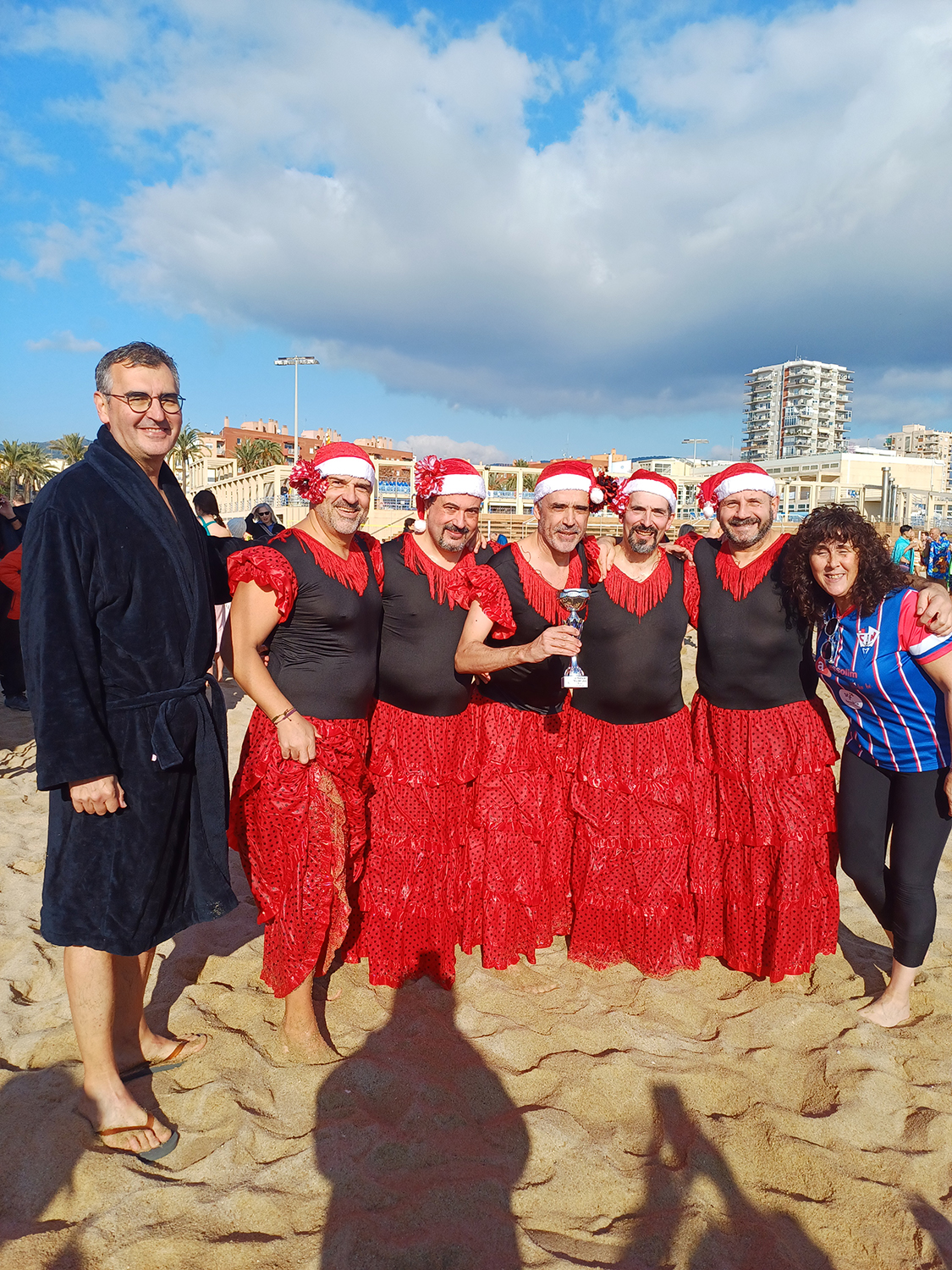 Com cada any vam premiar, l’agosarat més menut, en Luka López Burgos que amb només dos anyets ja s’hi va llençar. També vam premiar la guanyadora de les darreres edicions la veterana més atrevida, la Rosa Roca que amb 90 anys, cada nova temporada, no dubta gens a l’hora d’entrar-hi. I també vam premiar la nota còmica de la banyada, la disfressa més trempada que va ser per als “Andalusos aquàtics”, que abillats amb vestits de “faralaes” van remullar-se ben remullats.
