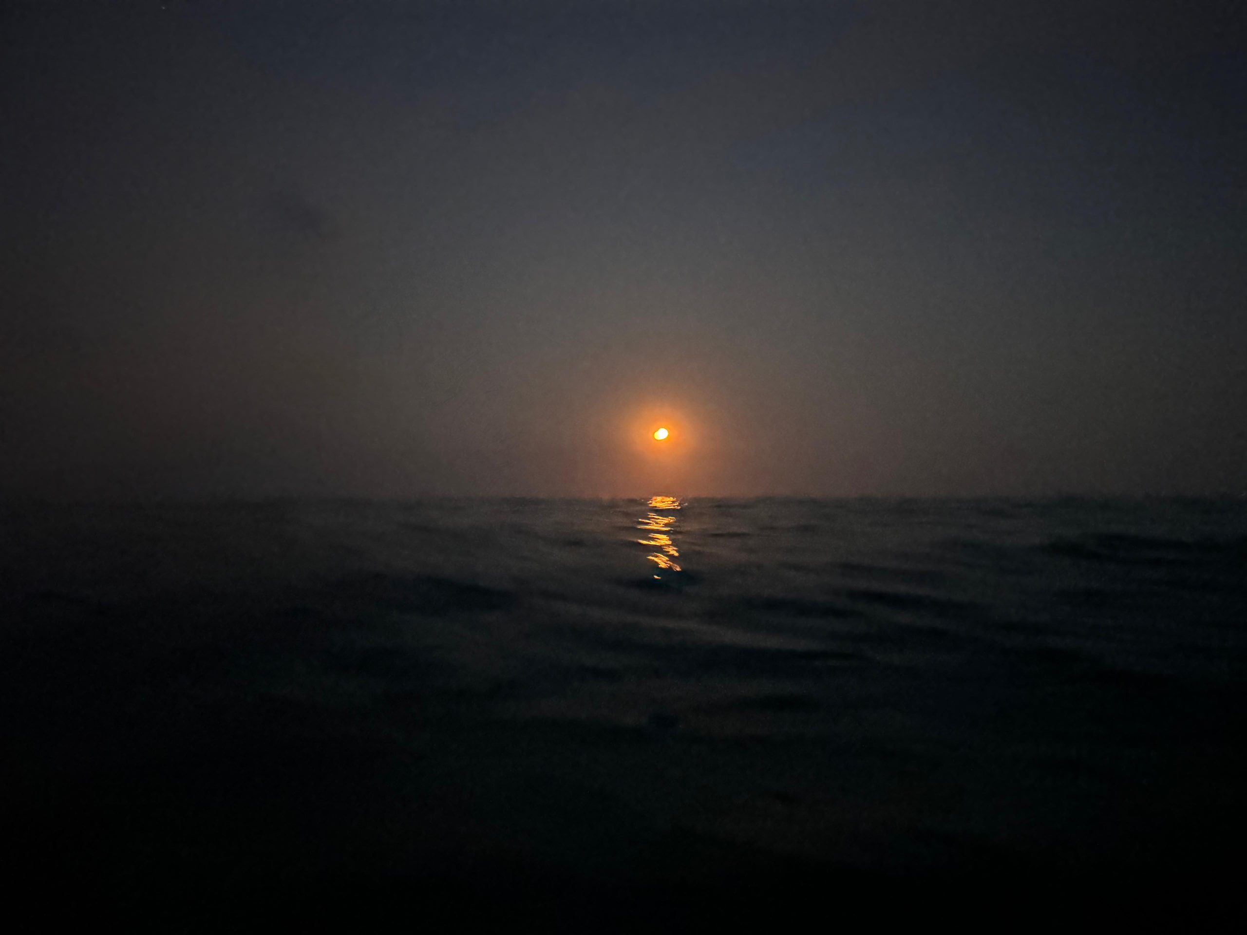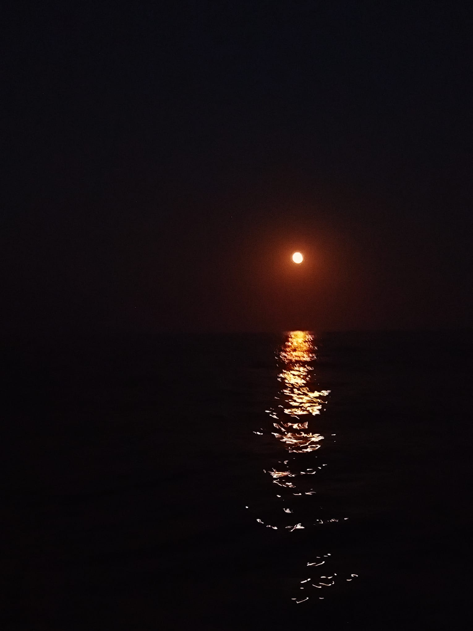 La lluna, que va aparèixer amb un color ataronjat preciós, va il·luminar tota la sortida i va regalar un reflex màgic sobre l’aigua. Una experiència inoblidable per connectar amb el mar i la natura de nit, en un entorn tranquil i ple d’encant.