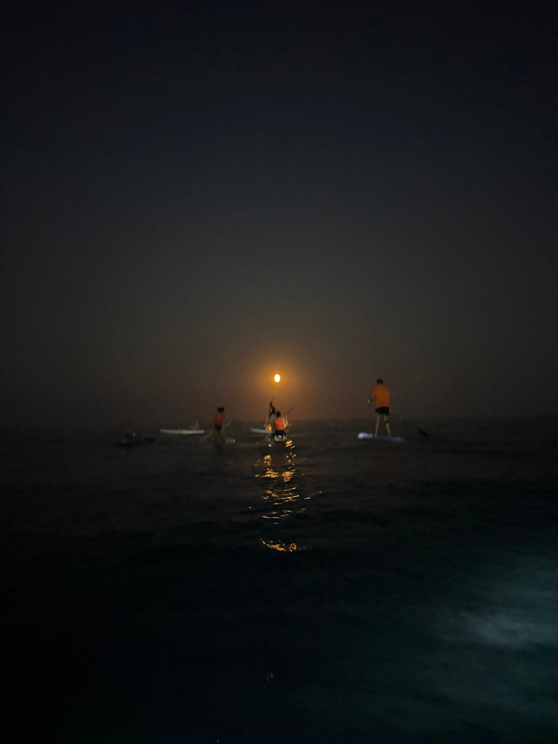 Ahir al vespre vam viure una experiència única amb la sortida del Full Moon Pàdel Surf, guiada pel nostre monitor Òscar. A les 21 h es va donar el tret de sortida a una activitat que va combinar esport, natura i una lluna plena espectacular.