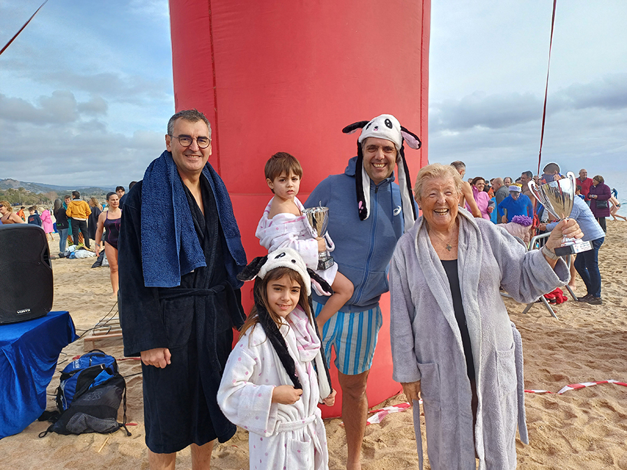 Doncs set anys, sense contar els anys de la pandèmia que no es va fer, vaig començar quan en tenia vuitanta, i sí, pel que es veu soc la més veterana. Home, fa il·lusió que et facin aquest reconeixement, a més, la 1a. Banyada de l’Any és molt bonica, tanta gent, i tots amb ganes de gresca, de tirar-se a l’aigua.